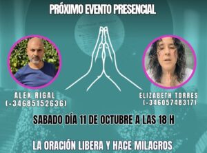 Evento: La oración libera y hace milagros. Con Alex Rigal y Elizabeth Torres. Fecha: 11 de octubre, 18:00 horas. Lugar:...
