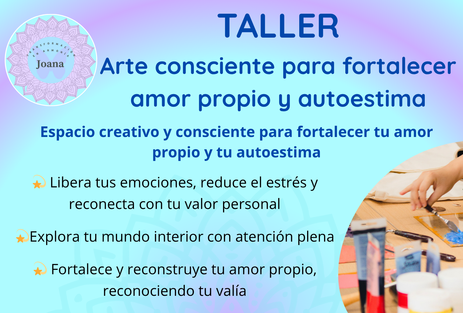 TALLER Reencuéntrate contigo mismo y reconecta con tu esencia Transforma tu interior, vive con propósito, presencia y conexión con tu cuerpo. Conecta contigo mismo, suelta apegos y libera tus emociones Conecta con tu cuerpo con presencia Fortalece tu bienestar...