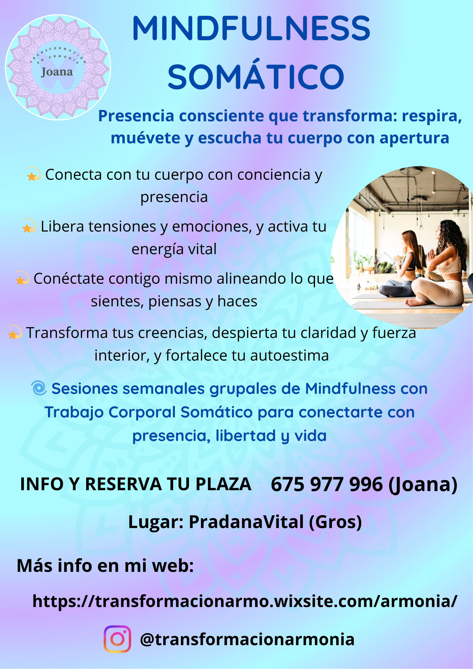 INFO Y RESERVAS: 675 977 996 (Joana).